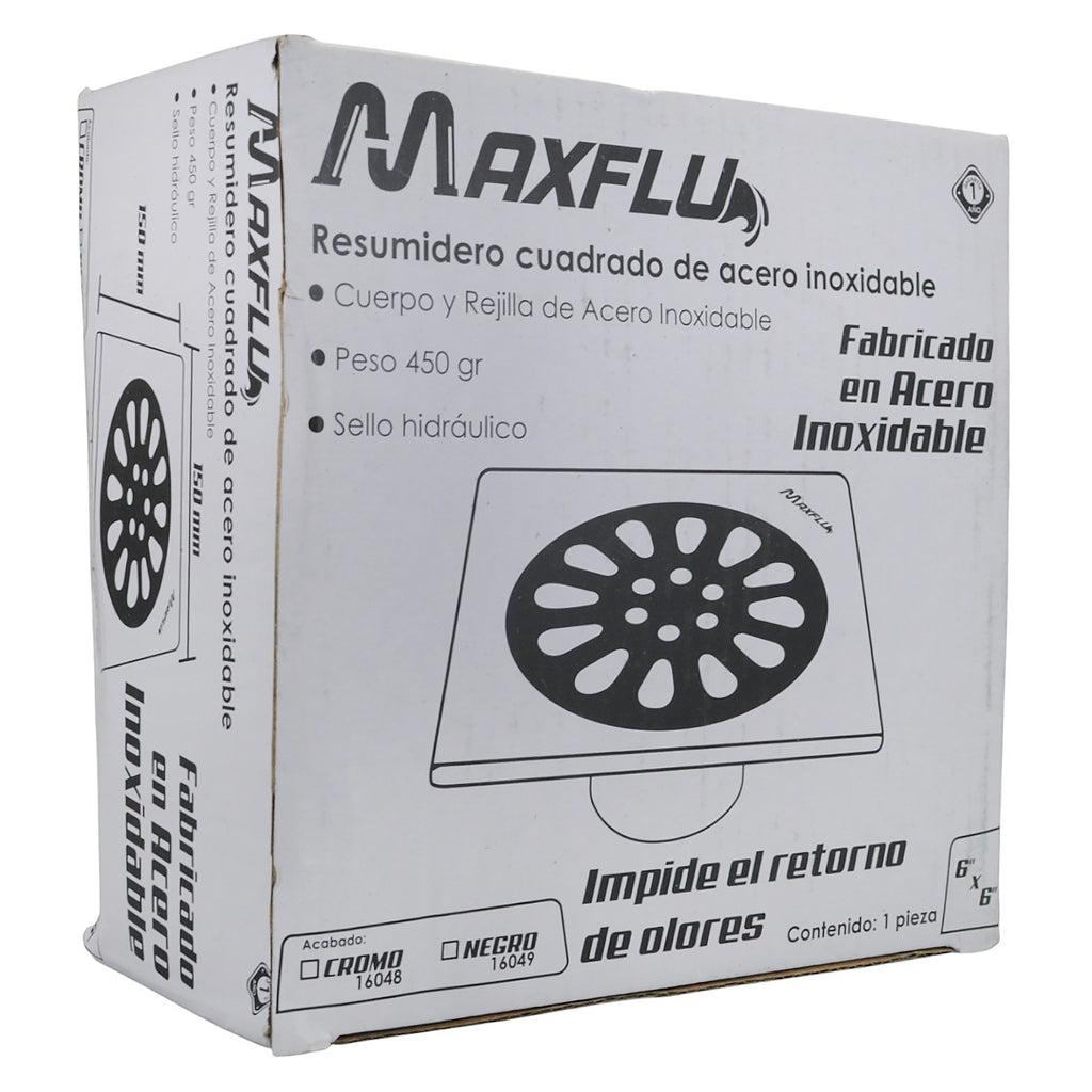 COLADERA ADIR CUADRADO ACERO INOX ACABADO CROMO 150mm x 150m