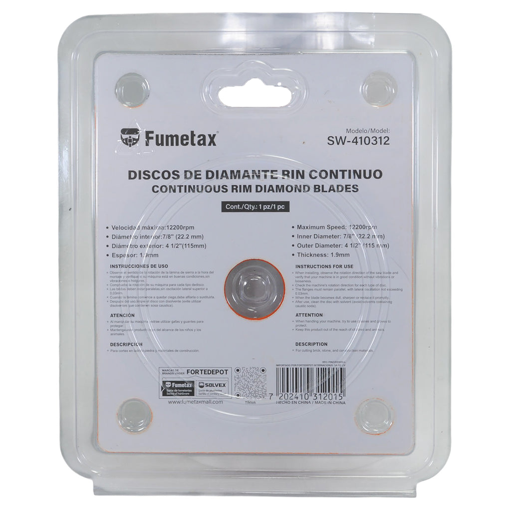 DISCO FUMETAX DE DIAMANTE 4 1/2 RIN CONTINUO