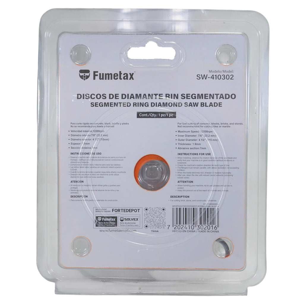 DISCO FUMETAX DE DIAMANTE 4 1/2 RIN SEGMENTADO