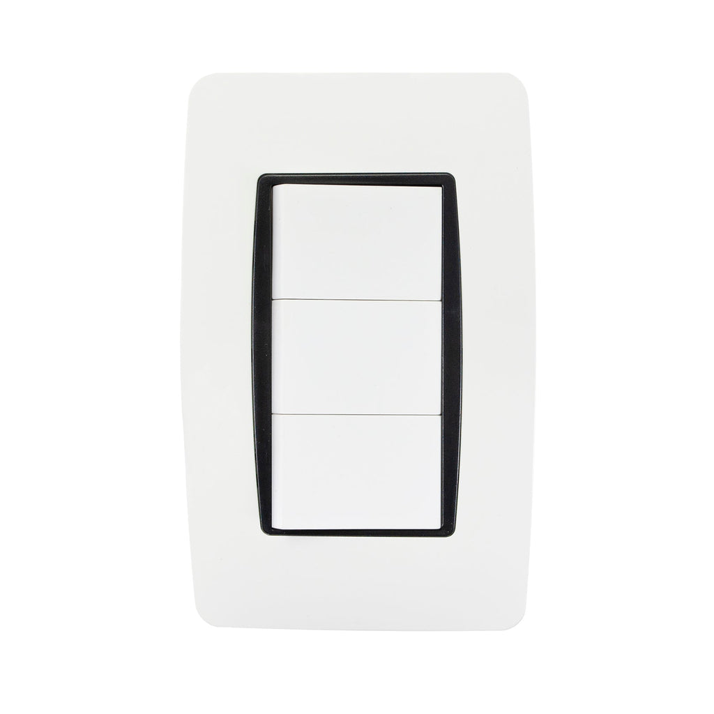 Placa Sanelec Verona con 3 apagadores, ideal para distribución de iluminación. ¡Y lo encuentras en La nueva eléctrica!