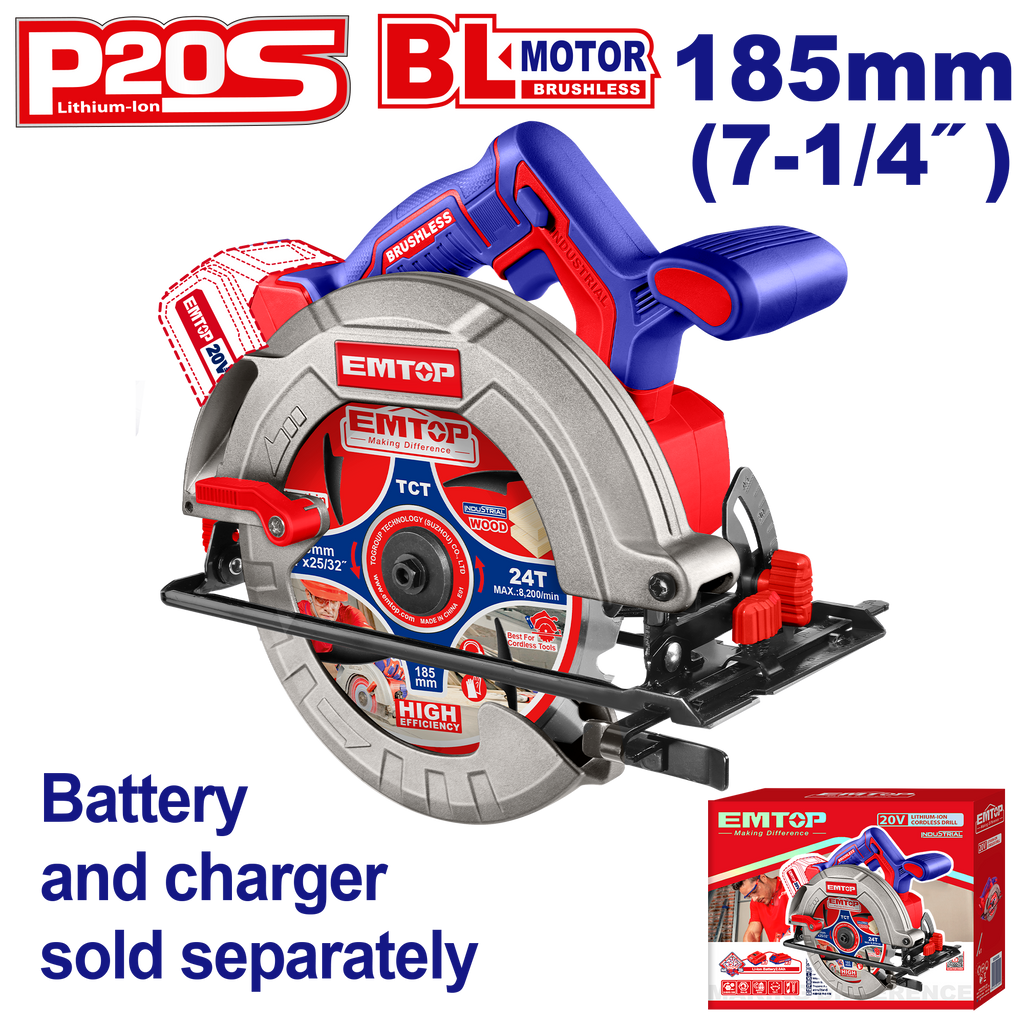 Sierra Emtop circular 7 1/4" inalámbrica 20V, potente y precisa para cortes rápidos. ¡Y lo encuentras en La nueva eléctrica!