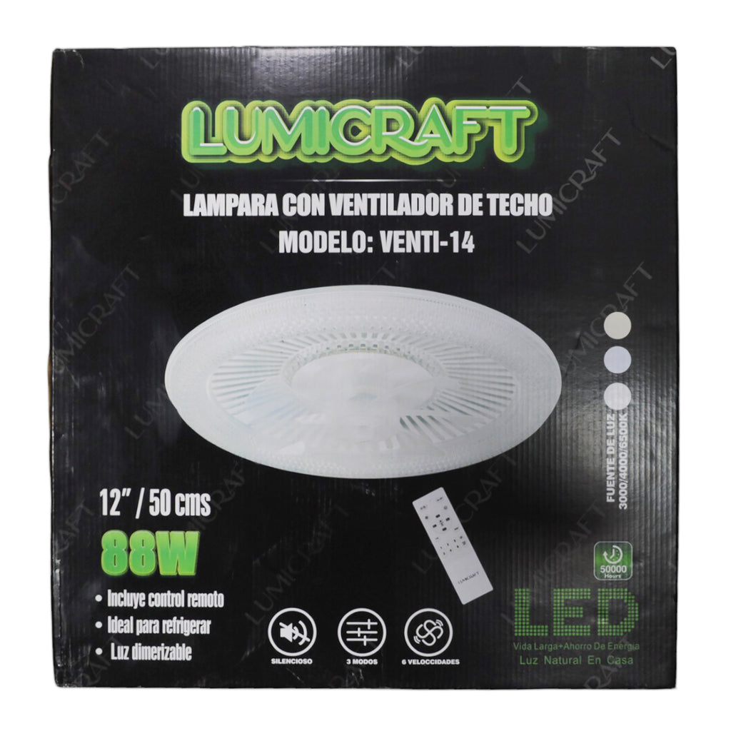 Ventilador Lumicraft con LED integrado de 88W y 3 tonos de luz, ideal para climatización e iluminación. ¡Y lo encuentras en La nueva eléctrica!
